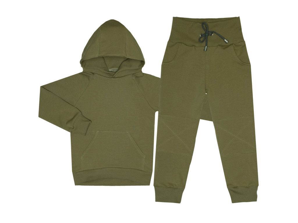 Tepláčky s kapsou - Basic oliva