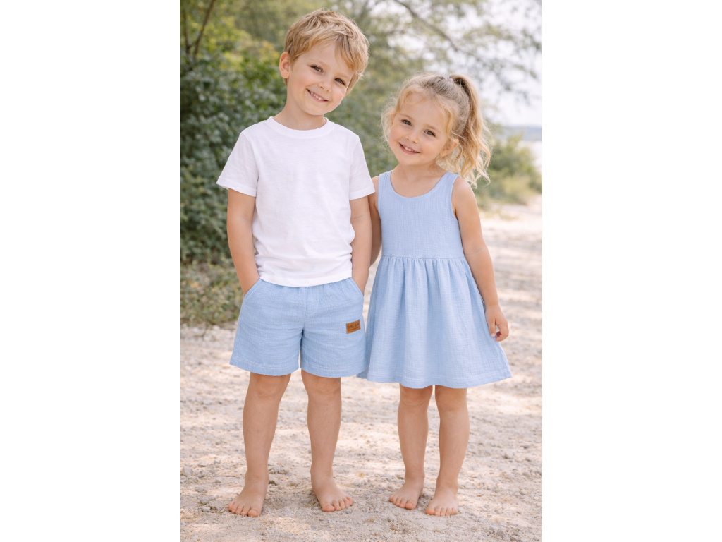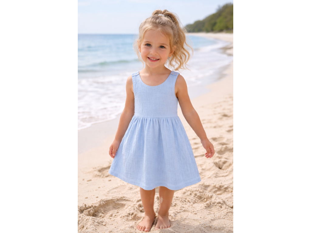 Laclové šatičky Mušelín - Světle modrá - skladem